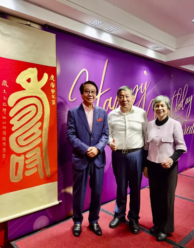 葉慶良博士,正在介紹原創者陸惟華博士的國際影響力 左起:香港國際文化藝術交流聯會永久榮譽會長葉慶良博士、比利時美術家協會主席陸惟華博士、金怡假期旅行社葉慶寧董事長、香港國際文化藝術交流聯會侯杏妹教授恭喜葉慶寧董事長生日快樂 2025年9月26日,金怡假期創始人Freddy葉慶寧發出溫情邀約——9月27日(週六)晚,香港金鐘名都酒樓迎來一場兼具紀念意義與懷舊情懷的特別聚會。這場聚會既是為慶賀他70壽辰與金怡假期36載耕耘,更是與親友、員工及各界摯友一道,見證名都酒樓的最後榮光,為這家承載無數港人記憶的老字號,獻上最誠摯的敬意。當晚酒樓高朋滿座,暖意與星光交織。... Read More...