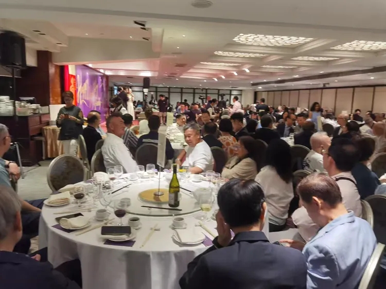 暮色剛漫過金鐘的樓宇,名都酒樓的玻璃門已映著暖黃燈光。推門而入時,熟悉的粵式酒樓香氣裹著笑聲撲面而來:大圓桌鋪著熨帖的米白桌布,每席中央的精緻桌卡上,“中國”“澳洲”“新西蘭”“新加坡”“南非”“紫荊席”等字樣清晰可見;銀屏上滾動著酒樓舊照,瞬間拉回眾人對過往的回憶。不少嘉賓剛進門,就握著葉慶寧博士的手寒暄,有人指著牆上的酒樓老招牌合影,有人翻著“旅遊節目經典畫冊”輕聲討論,連空氣中都飄著“好久不見”的親切感。
