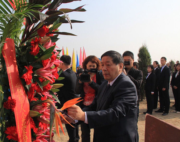 世界企业家协会副主席、著名爱国侨领陆惟华博士向烈士英雄纪念碑敬献花篮