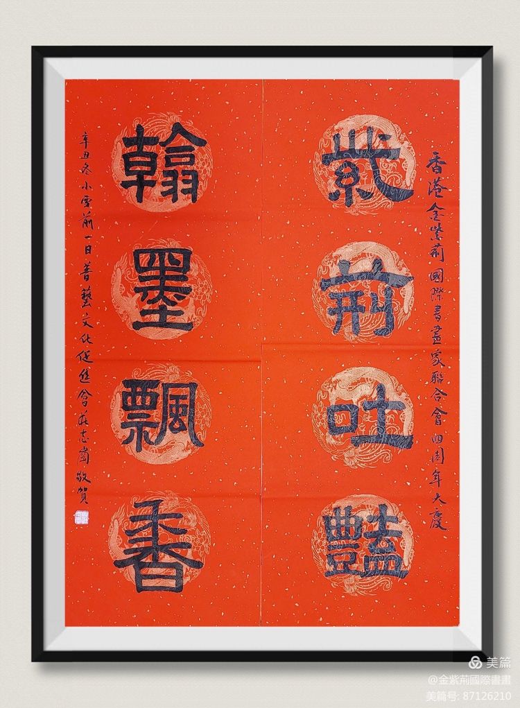 香港金紫荊國際書畫家聯合會於2021年11月26日晚上,假粉嶺新 明苑宴會廳舉辦该會成立四周年筆會雅集活動。出席活動的書畫家有:陳悅、陳小鳳、李燕香、張璐璐、童震勇、鄭佩霞、陸惟華、侯杏妹、莊志崗、譚佩玉、梁德玲、何慧禎、雷朝典、陳偉珠、林善玲、賴玲玲、蔡開明、梁寶琦、梁敏兒、詹何展薇、雷彩新、邱月明、李露英、張林英、潘孝汶、劉思展、葉達、謝玉珍、張觀娣、張天送等。