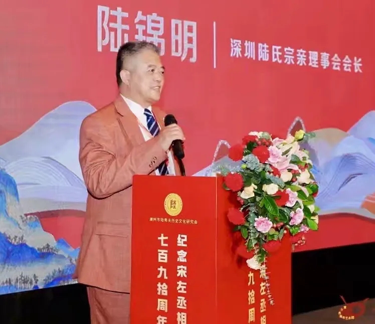 深圳陸氏宗親會會長陸錦明先生致詞:值此陸秀夫公誕辰790周年紀念大會隆重召開之際,我謹代表深圳陸氏宗親會,致以最熱烈的祝賀!